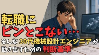 30代機械設計エンジニアが「転職にピンとこない」と悩んだときの判断基準を解説。キャリア停滞・給与不安・家庭との両立など、転職を検討すべきサインを整理。おすすめ転職エージェント3選も紹介し、後悔のないキャリア選択をサポートします。